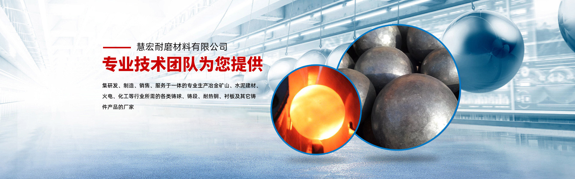 慧宏耐磨是一家集研發、制造、銷售、服務于一體的專業生產冶金礦山、水泥建材、火電、化工等行業所需的各類鑄球、鑄段、耐熱鋼、襯板及其它鑄件產品的廠家。